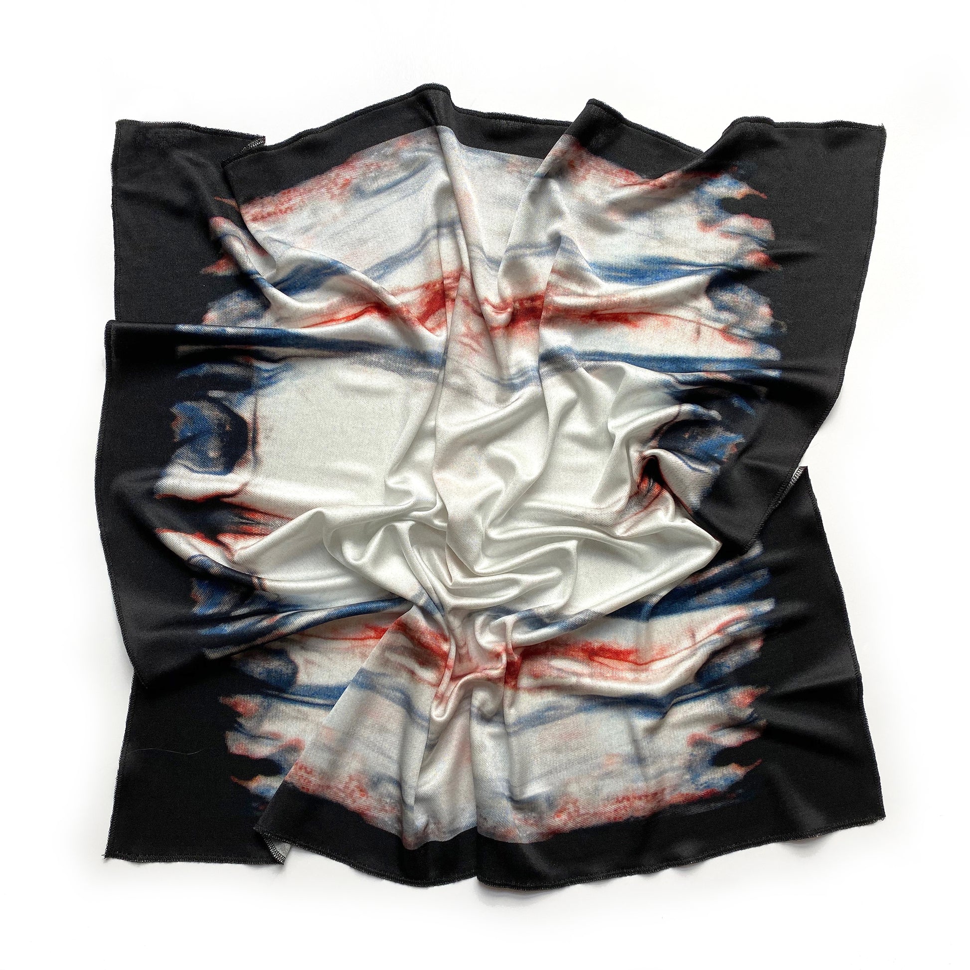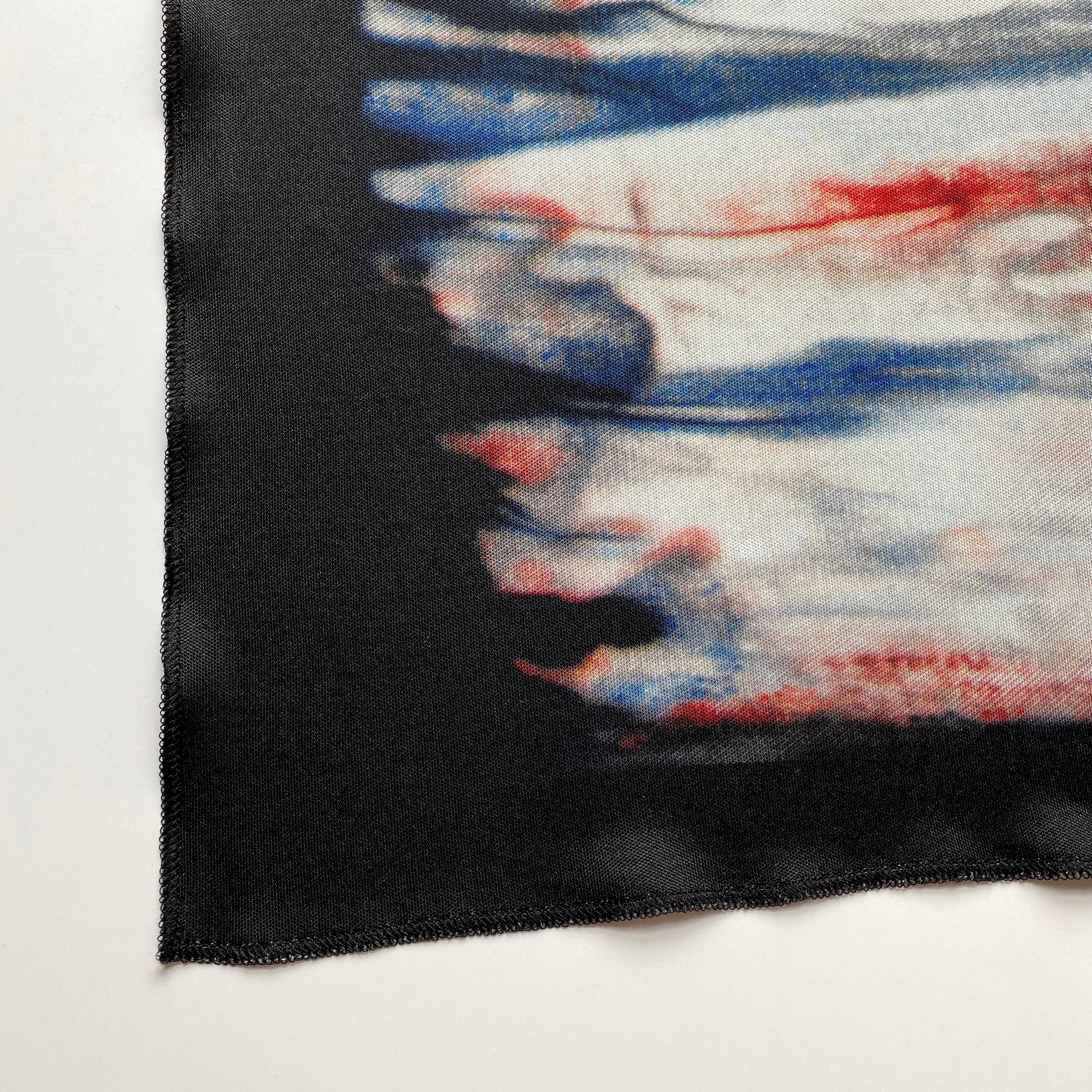 Printed from a hand-dyed pattern inspired by the colours and shapes of renaissance paintings. The natural and organic nature of the hand dyeing process makes a stunning pattern on the extra soft stretch silk jersey.